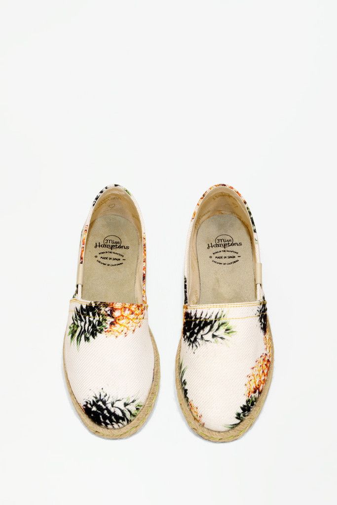 Maybe it is my way of getting in the summer mood, but I cannot get enough of pineapple this year. Not only do they taste amazing and look adorable on my kitchen counter, they are also a great way to “summer-ize” a wardrobe. Check back later this week for a sewing tutorial on making your own Pineapple Print Pom-Pom Shorts or incorporate a smaller print of pineapple with some great espadrilles that are popular this season.